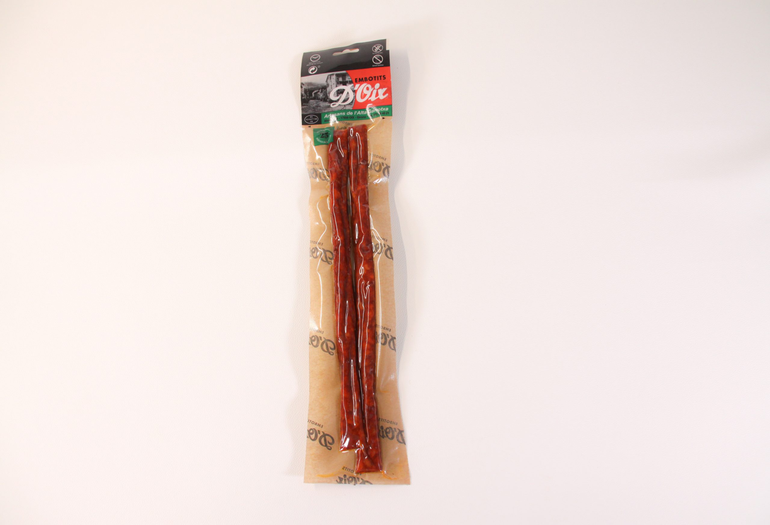 INGREDIENTS: Magre de porc, papada, pimentó, sal, sucre, dextrosa, dextrina, conservant (E-450i ii),(E-301),(E-252).